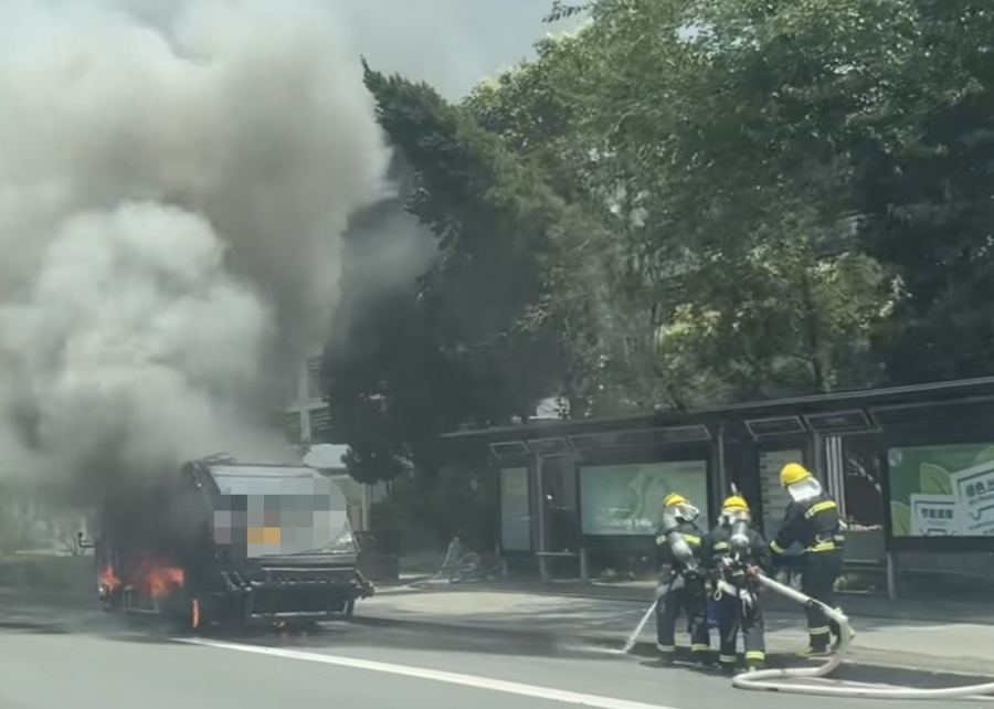 昨天(17日)中午,浦东新区成山路近邹平路发生一起垃圾清运车起火事故。火情发生后,消防部门到场处置,所幸事故未造成人员伤亡。