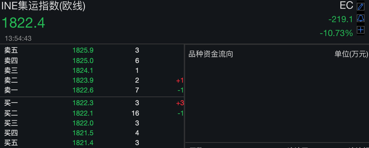 集运指数(欧线)主力合约日内跌超10%集运指数(欧线)主力合约日内跌超10%