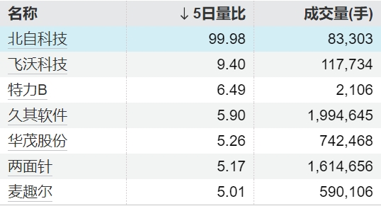7只个股5日量比超过5倍7只个股5日量比超过5倍
