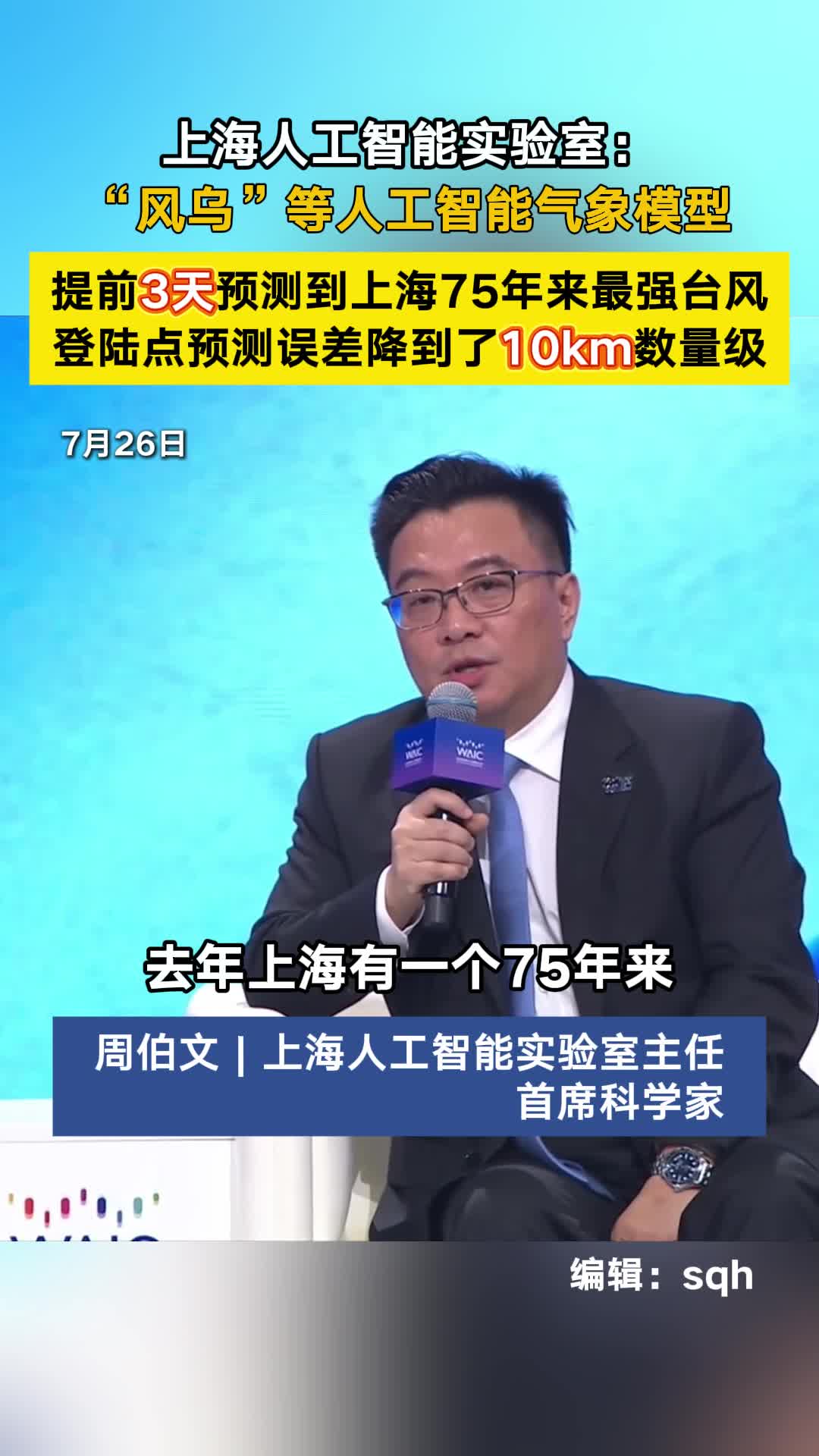01'00'' 上海人工智能实验室:“风乌”等人工智能气象模型 提前3天预测到上海75年来最强台风 登陆点误差降到了10km数量级 34 07-26 13:34