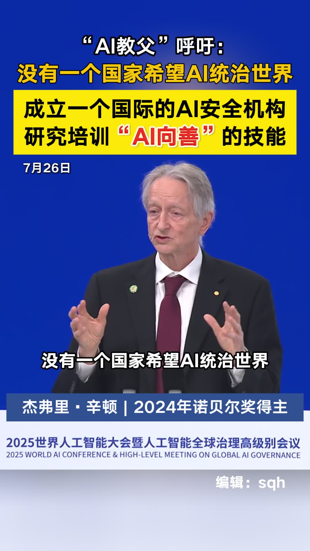 00'42'' “AI教父”呼吁:成立一个国际的AI安全机构 研究培训“AI向善”的技能 27 07-26 12:42